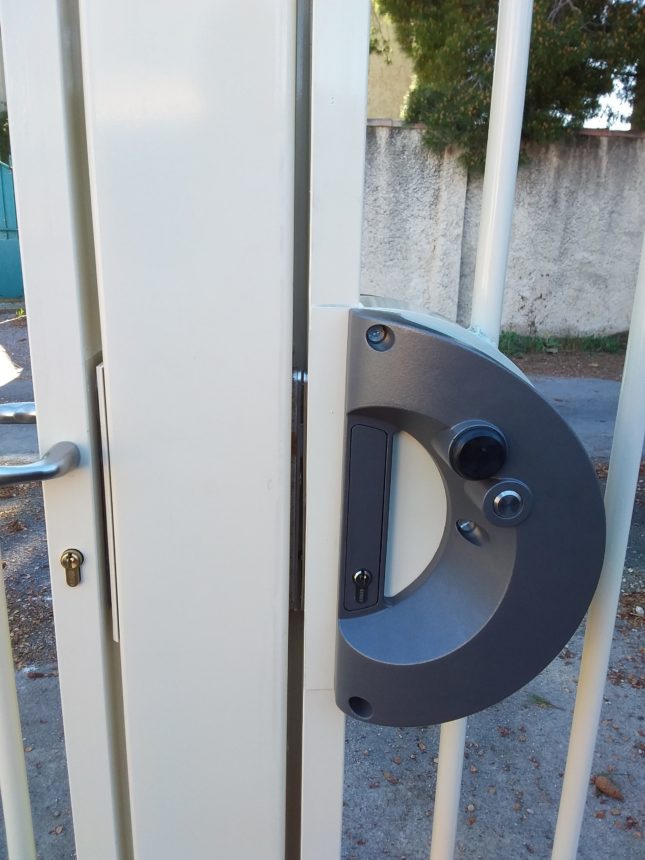 Pour ce projet, l’équipe Sim Fermetures a intégré à l’un de ses portillons une poignée autonome. Cette solution sans aucun câblage dispose d’un lecteur de contrôle d’accès et d’un bouton poussoir. Avec une autonomie de 140 000 manoeuvres, une capacité de 2 500 badges/télécommandes/pass et la possibilité d’ouverture à droite ou à gauche, la poignée autonome est une solution de choix offrant une grande autonomie.